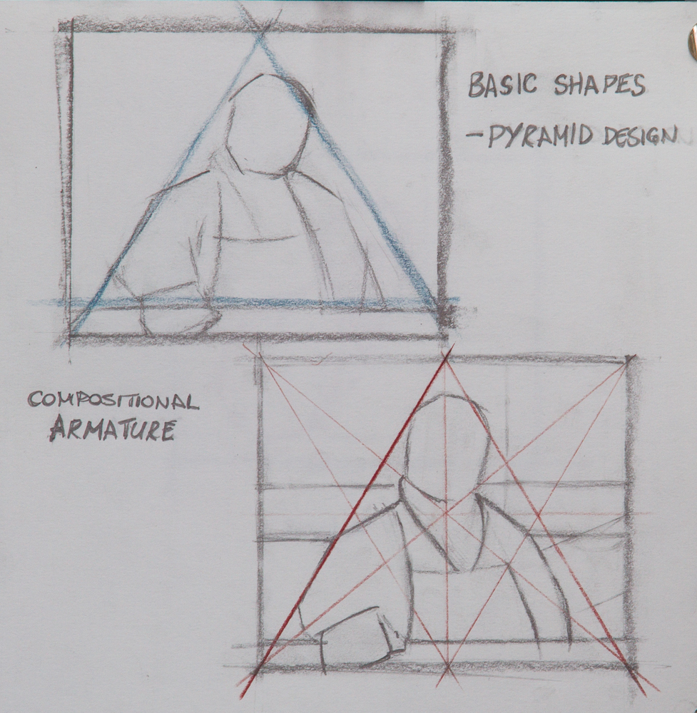Having worked out your composition you’ll make a full size working drawing, traditionally known as a ‘cartoon’. This is where you’ll finalise the design in more detail using a grid and armature to check your accuracy and allow you to transfer the design to a canvas for the final painting.