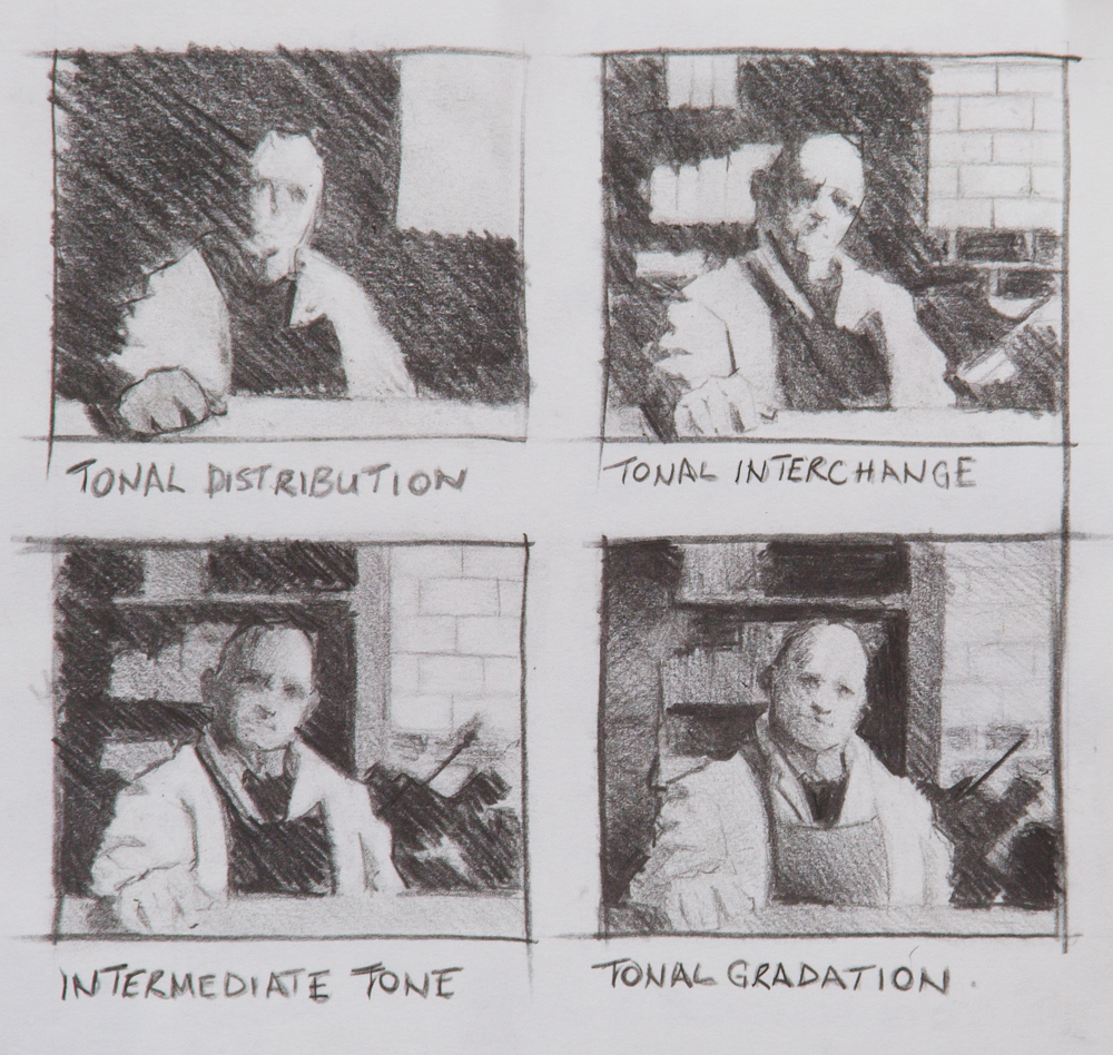 Firstly you’ll explore a number of compositional ideas on a small scale. You’ll start by sketching ideas in pencil or charcoal then paint. You’ll make tonal and colour studies investigating:
